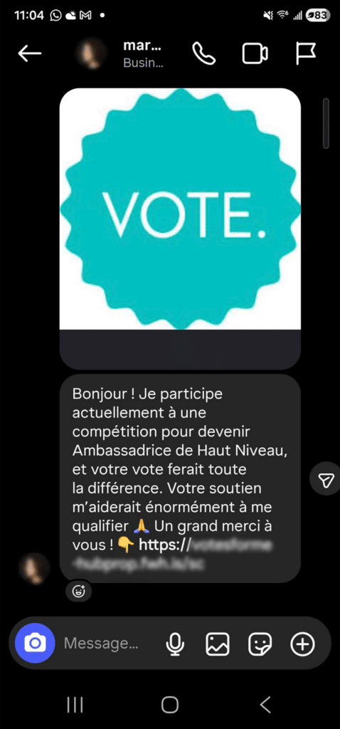 - Vos abonnés vous signalent avoir reçu des messages étranges de votre part — souvent liés à des arnaques, des investissements douteux ou des liens suspects.